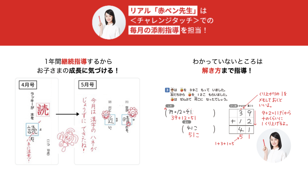 ↓担任制の「赤ペン先生」が解き方の指導だけでなくお子さまのがんばりをしっかり見守ってくれます!