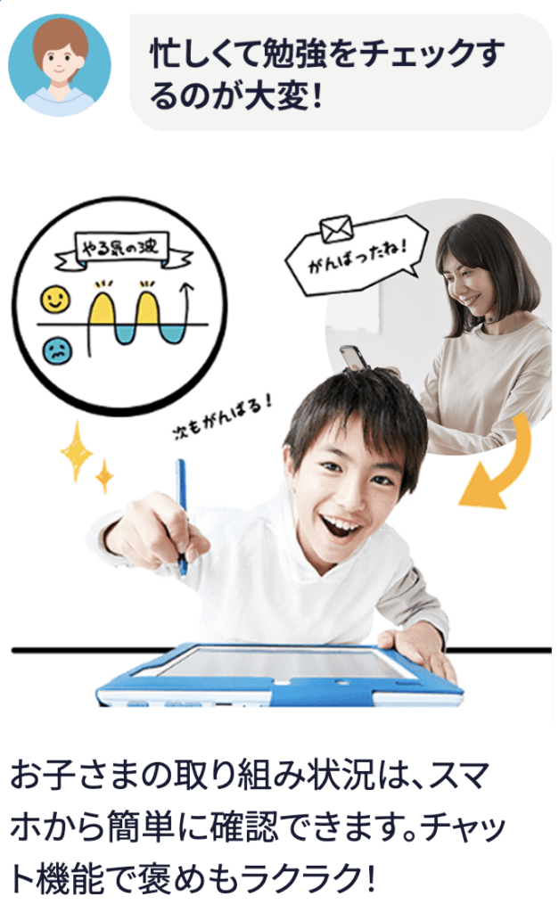 • 「まなびの手帳」で、親が進捗や成果をしっかり確認できる