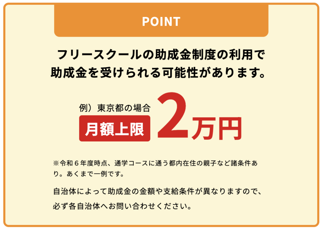 ただし、自治体によって条件はそれぞれ違います。また、補助金利用できるフリースクールも限られています。