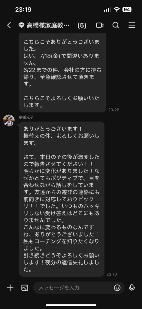 まなびーいんぐのLINEに寄せられた保護者からのメッセージ