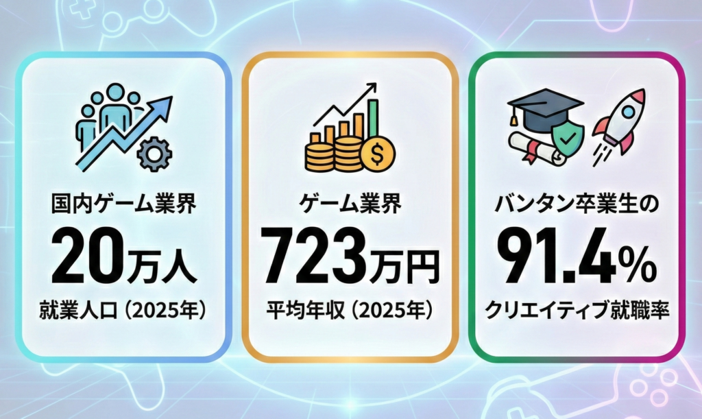 ゲーム業界の平均年収は給与所得者全体平均(約458万円)の約1.5倍。