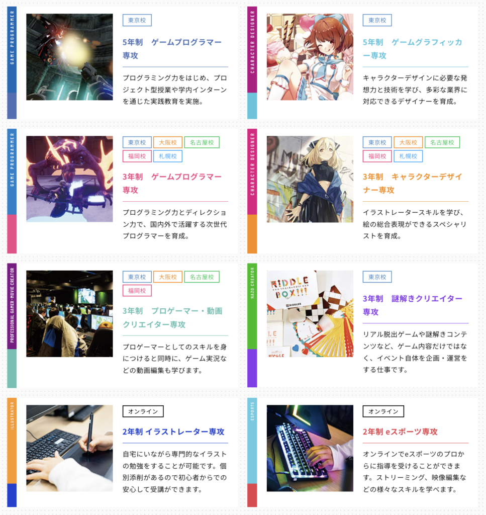 - Cygames・バンダイナムコ・カプコンとの企業コラボ授業あり