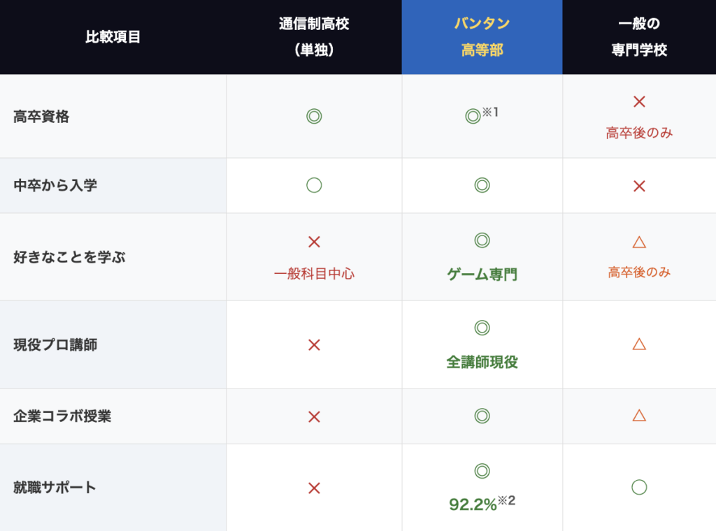 つまりバンタン高等部は、「通信制高校の高卒資格」と「専門学校レベルの実践教育」が一緒に手に入るところです。
