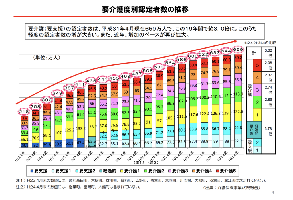 実際、要介護認定者数は年々増加し続けています。また、介護スタッフの人手不足も深刻化しており、入居待ち状態の方が増えているという状況なのです。