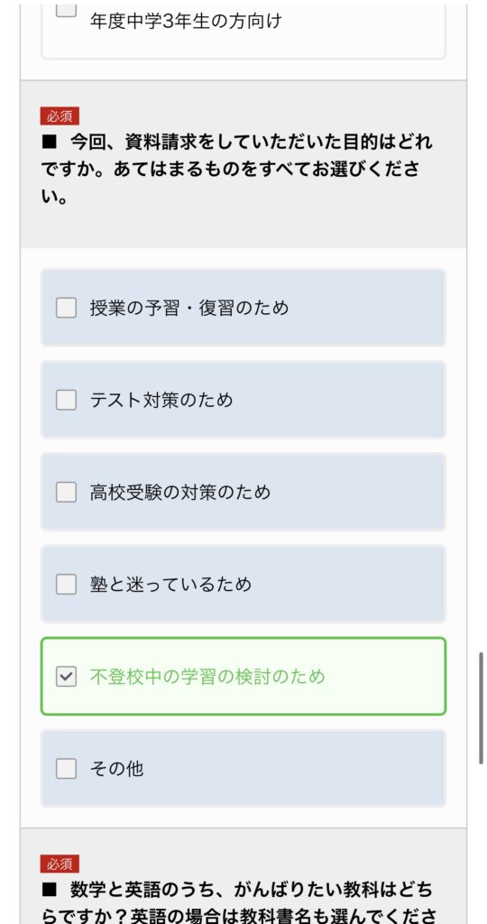 ③目的で「不登校中の学習の検討のため」を選択