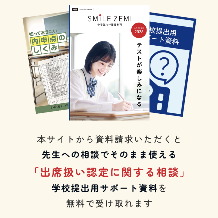 「先生にどう説明すればいい?」という親御さんのために、資料請求するだけで「出席扱い相談用の書類」がもらえます。先生への相談がグッとスムーズになります。