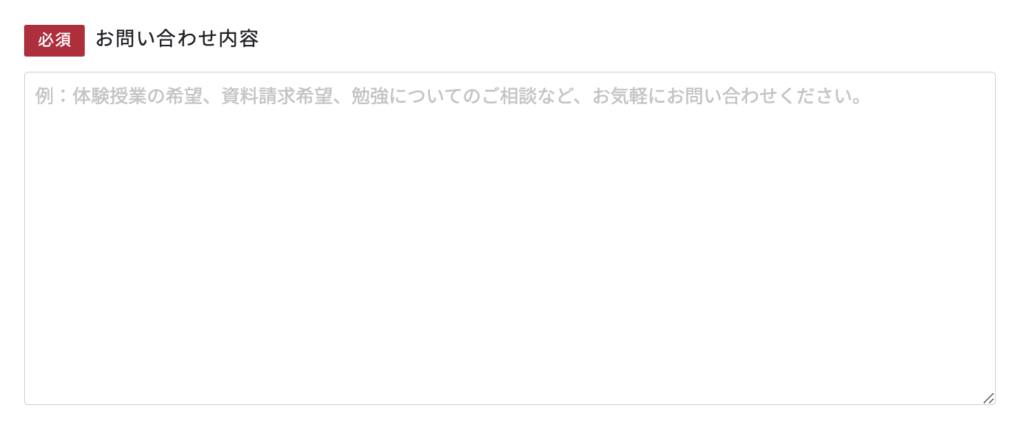 資料請求や無料体験申し込みをする場合、以下のように「お問い合わせ内容」を入力する必要があります