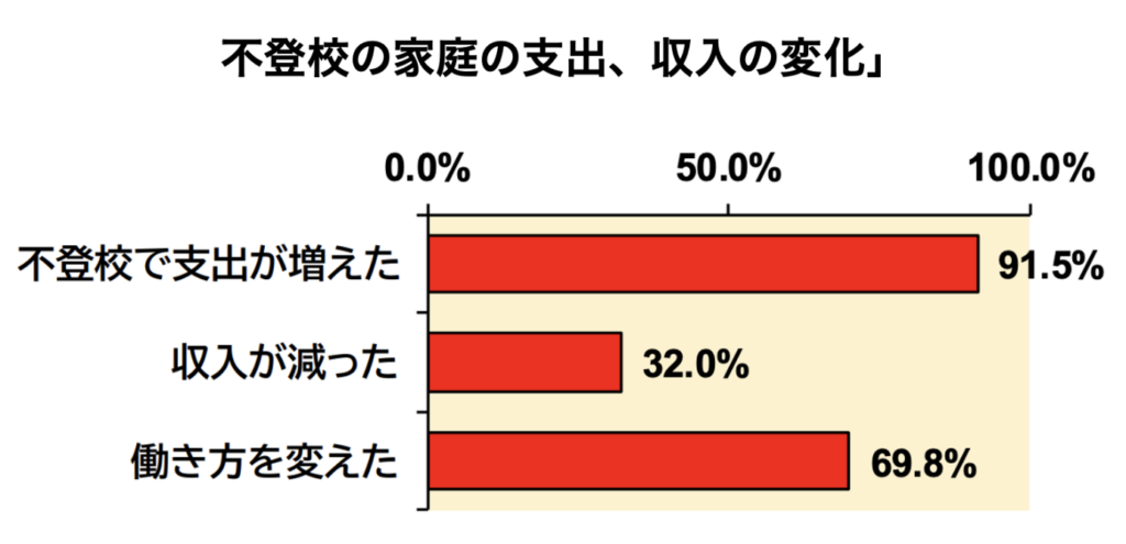 不登校の子どもを持つと経済的にも精神的にも負担が増えるというデータも