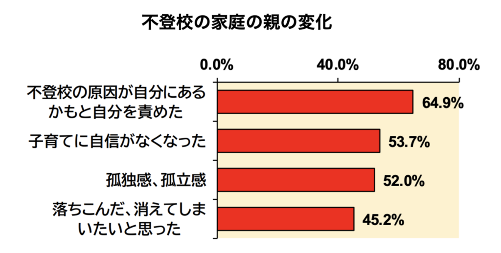 また、上記のように、「自信喪失」「孤独感」など保護者様の精神的ストレスにも大きく影響しています。